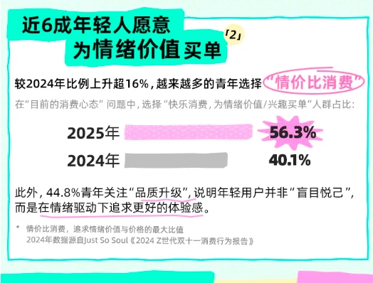 越来越多青年追求“情价比消费”,即在价格与情绪价值间寻找最大平衡,情绪体验已成为年轻人消费决策的重要考量。