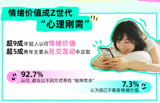 在物质生活日益丰裕的当下,Z世代的消费重心正从“拥有什么”拓展至“感受什么”,“情绪充电”与“社交陪伴”对他们而言,与实物商品同样重要。这种转变并非偶然,而是源于当代年轻人面临的学业竞争、职场内卷、社交焦虑等多重现实压力,他们迫切需要通过消费构建情感支持网络,维系心理韧性。