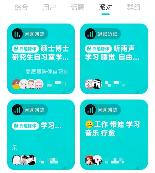 群聊派对则通过“兴趣+场景”的双重绑定,打造沉浸式情绪互动场景。平台基于用户兴趣标签,精准匹配组建主题群聊,从“职场减压吐槽”“考研互助”到“潮玩分享”,覆盖年轻人生活的多个情绪场景。